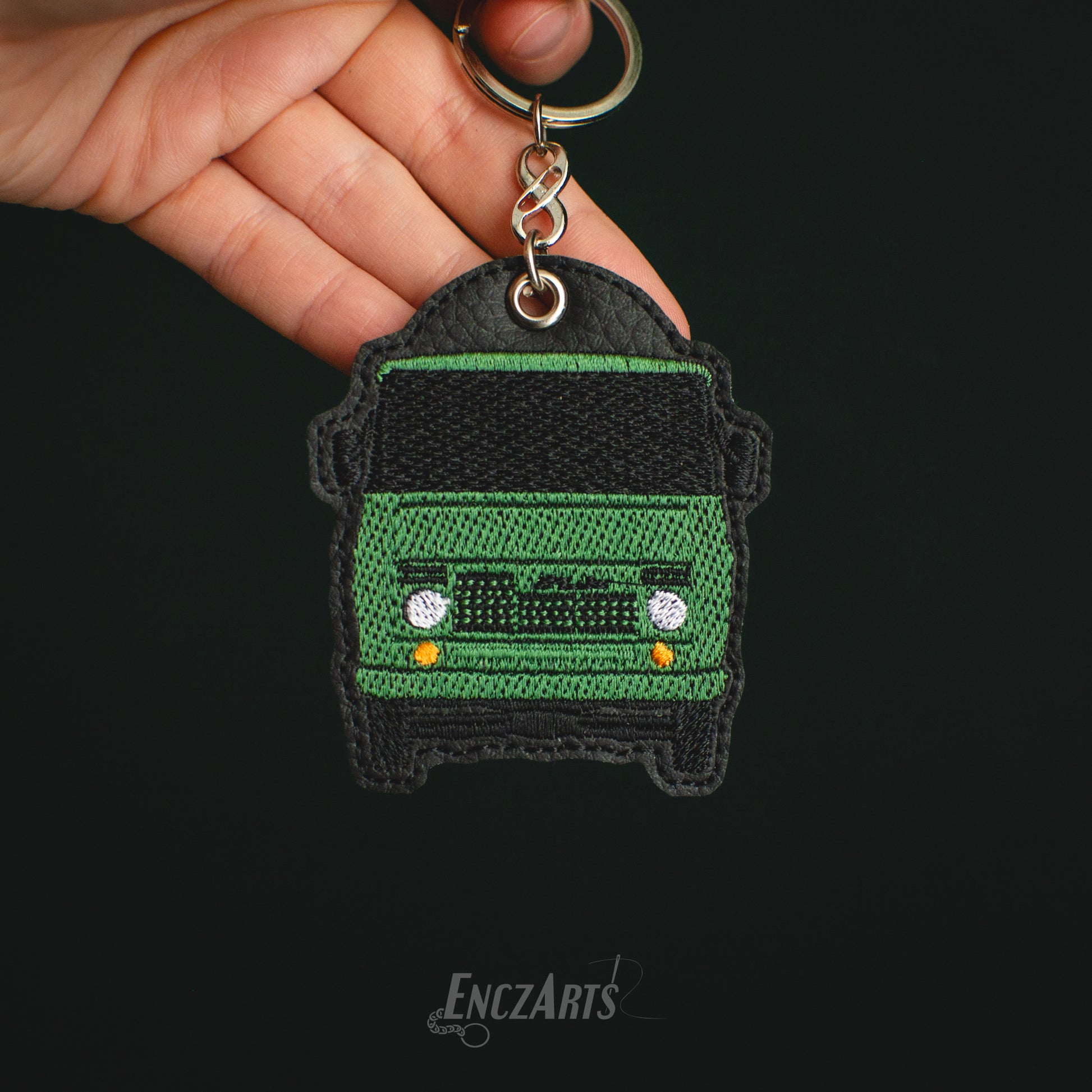 Brelok wykonany jednostronnie techniką haftu na tapicerskiej ekoskórze. Metalowe kółeczko z łańcuszkiem. Kształt łączników może się różnić w zależności od ich dostępności. Projekt autorski na podstawie zdjęcia pojazdu. Każdą sztukę wykonuję specjalnie na zamówienie wedle Twoich wytycznych co do koloru. Jeżeli Twój pojazd różni się od wersji seryjnej lub jest zwyczajnie zmodyfikowany - będzie potrzebny nowy projekt ze zdjęcia Twojego pojazdu. Znajdziesz go pod nazwą "CUSTOM".